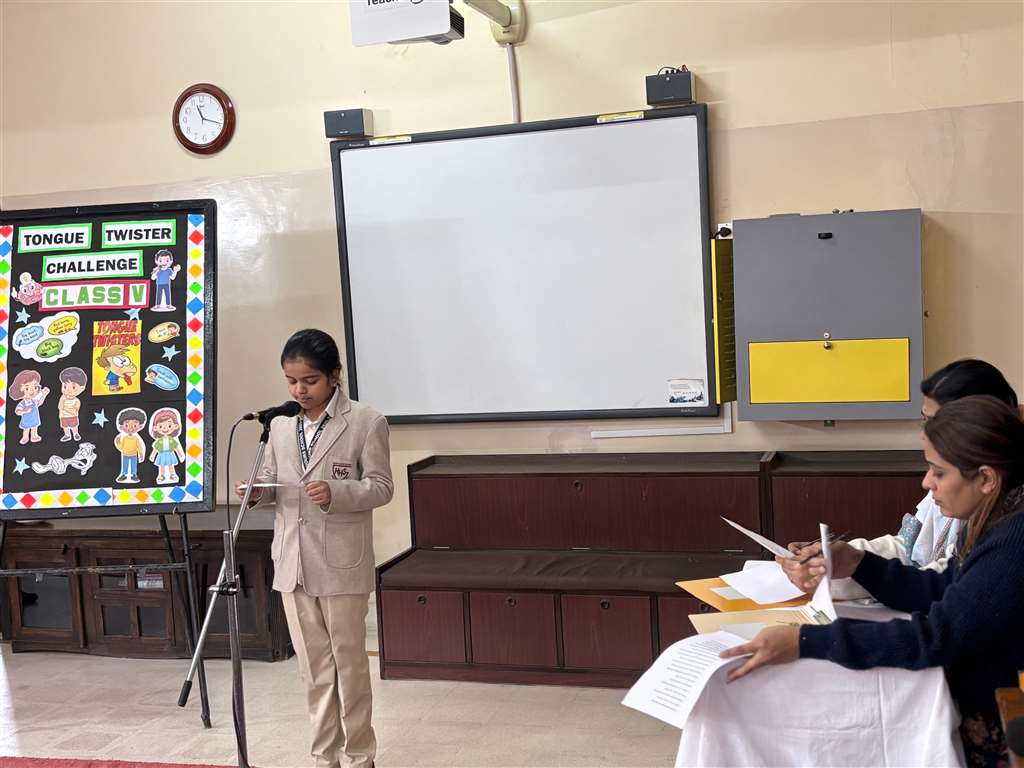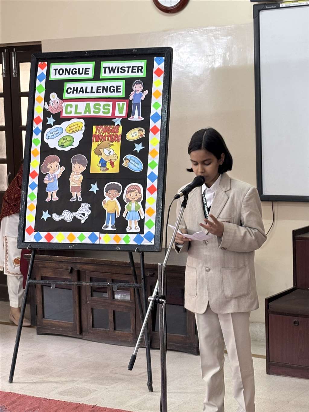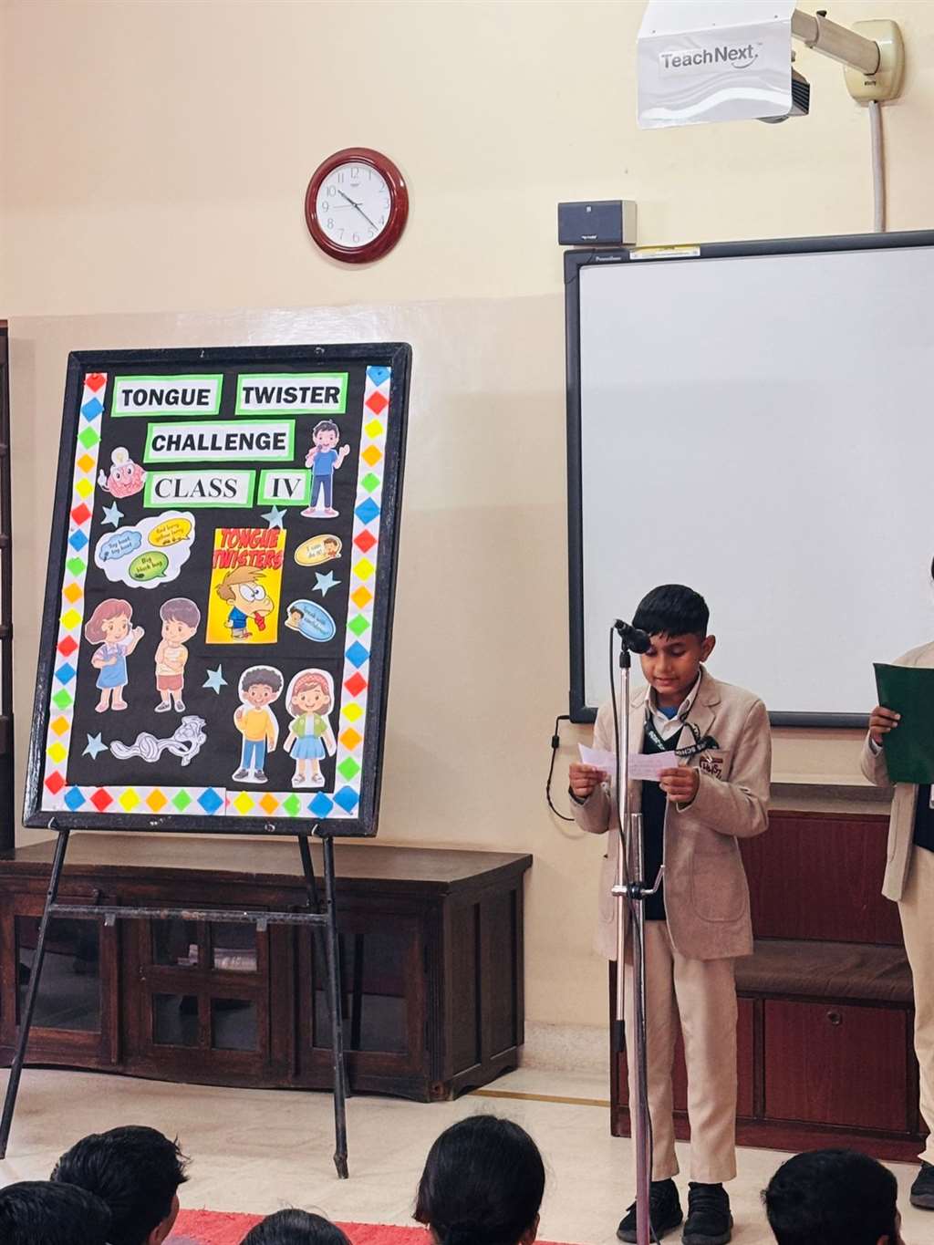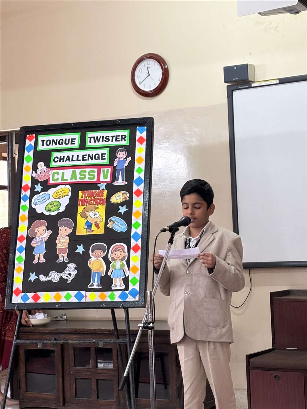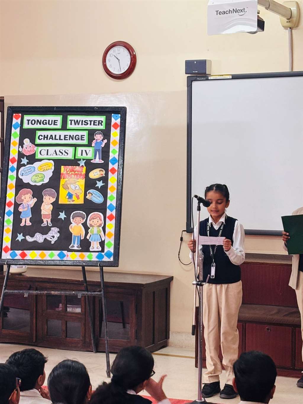 A lively Tongue Twister Competition was organized for the students of Grades 4 and 5, providing an engaging platform to showcase their language skills. The activity aimed to enhance pronunciation, clarity of speech, confidence, and fluency.